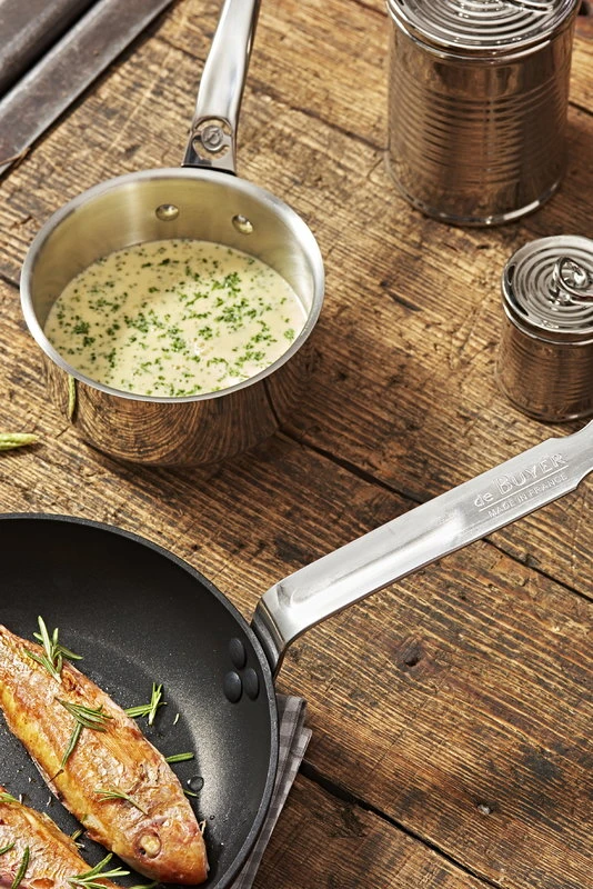 De Buyer’s Choc Intense 20 cm frying pan is ideal for cooking omelettes, vegetables or white fish. Perfected with a beautifully curved steel handle, the aluminium pan has a stylish, traditional look.