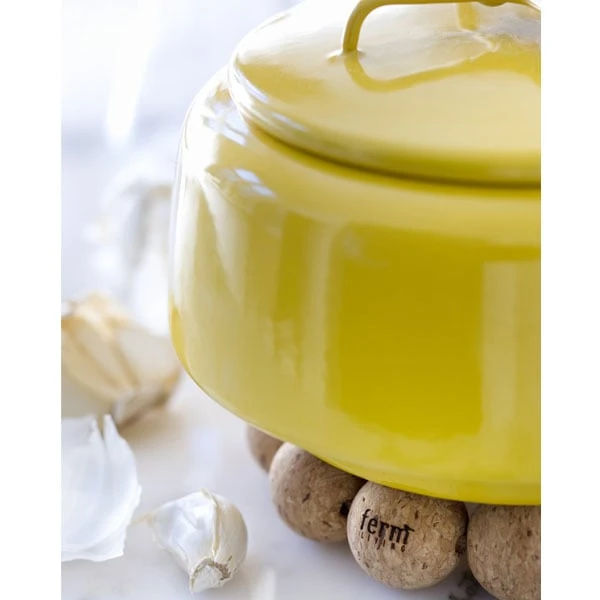 The Cork coaster is a trivet made of cork by the Danish ferm LIVING. The simplicity of the material makes this trivet special. With the Cork coaster you will serve your hot pots and pans in a unique way. The trivet has a diameter of 17 cm and each cork ball has a diameter of 3 cm.