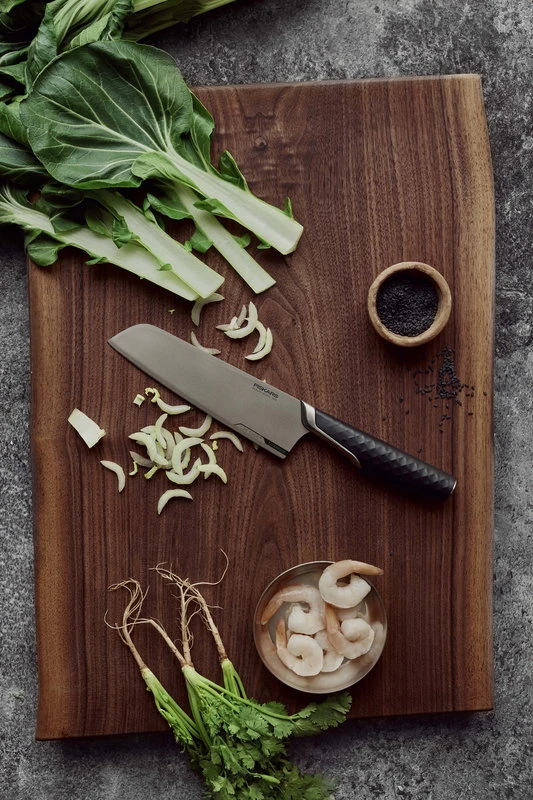 Fiskars Titanium Santoku knife comprises a revolutionary sharp, ultra-light titanium blade and ergonomic handle with an excellent grip. Fiskars Titanium knives have been made with a unique LZR-EDGE technology where the edge has been reinforced with titanium carbide particles – tests have shown that these knives stay sharp four times longer than regular steel knives. Fiskars Titanium knives are corrosion free and they have received the highest possible grade in the CATRA knife sharpness test. The design of the Titanium range is both functional and timelessly elegant, and the knives serve in home and professional use alike.
