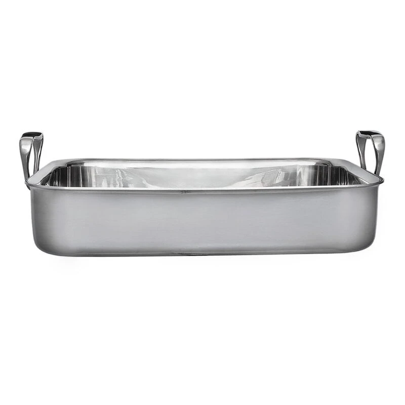 Heirol’s Servire Pro roaster is a timelessly shaped oven pan that is ideal for even professional use. The roaster, equipped with two handles, is made of high-quality steel, the three layers of which store and distribute heat efficiently, cooking the food evenly. The pan is suitable for use in the oven as well as on all types of stoves.