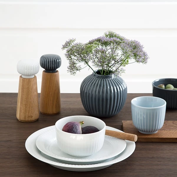Hammershøi grinder, designed by Hans-Christian Bauer for Kähler, is part of a beautiful ceramic collection named after artist and ceramicist Svend Hammershøi. He worked for Kähler from 1893 until his death, and his large vases and bowls were often adorned with simple vertical furrows. The same decorative pattern repeats in the timeless Hammershøi collection that is perfect for both everyday use and festive settings.