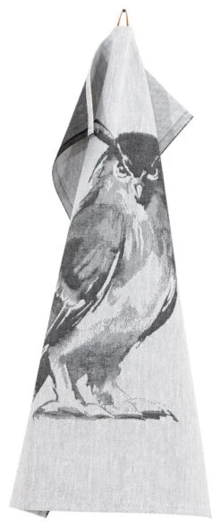 The Orvokki tea towel from Kauniste features a detail from Hannele Äijälä’s delightful floral pattern that depicts large violets in yellow, pink and light blue. The towel is made from a mix of linen and cotton, and it has a convenient loop for hanging.