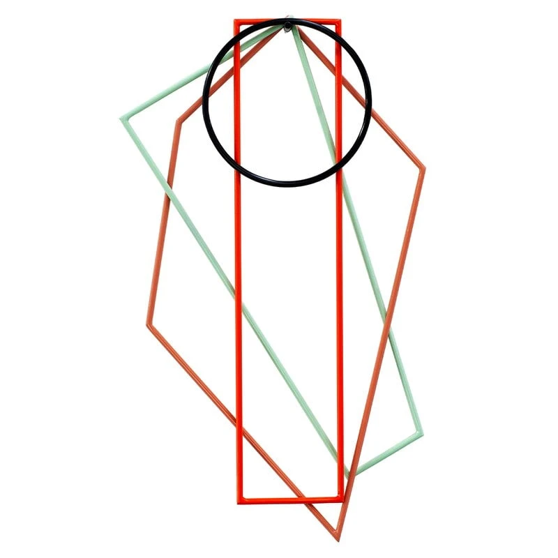 Stripped to the bare minimum, the trivets consist only of a thin steel outline. When not in use, the trivets can be stored on the wall. The mix of different geometric shapes creates a work of art that is simply abstract lines, changing according to how the four trivets are hung on top of each other.